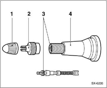 Achtung: zum anziehen des ventileinsatzes kann nur eine metallschutzkappe - 2 - verwendet werden. Metallschutzkappen sind an der tankstelle erhältlich. 1 - Gummischutzkappe, 4 - ventil.